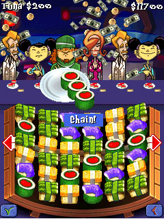 В этой увлекательной игре вы станете владельцем суши-бара, переполненного голодными посетителями, ожидающими свою японскую вкуснятину. Перемещайте суши по полю так, чтобы они совпадали, и зарабатывайте деньги. Подбирайте сочетания разноцветных блюд из морепродуктов в меню из 8 видов вкусных, свежих суши. Наполняйте тарелки, используя комбинации, цепочки и гарниры, и вскоре ваши клиенты будут танцевать, веселые от саке!